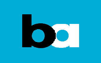 a light blue/teal 'a' in a white background the "BART' in black letters above the 'ba'. The flag is a light blue/teal rectangle (3:5) with the black 'b' and a white 'a' without the 'BART' portion of the logo. The logo can be seen on the BART web page at www.bart.gov.