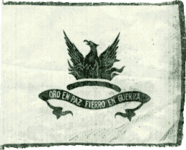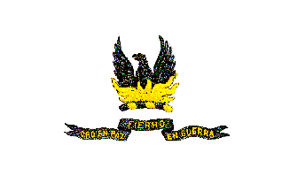 Description: A white field, with a phoenix rising from flames. There is a motto beneath the phoenix on a ribbon, "Oro en paz. Fierro en guerra." According to Whitney Smith's The Flag Book of the United States [smi75a]:, the flag was official as of 16 Dec 1940.
