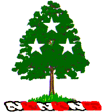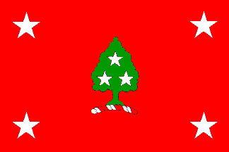 In use since 1939. Red with the state military crest on the center (blazoned by the U.S. Army as "on a wreath of the colors, upon a mount vert a hickory tree proper charged with three mullets one and two argent") and a white star in each corner. [smi75a] Smith says this flag was unofficial as of 1975; I have no information to say whether it has been made