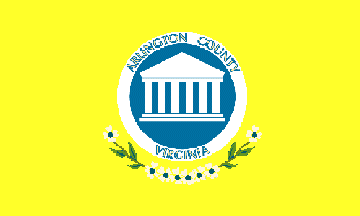 This is the flag of Arlington County located in northern Virginia, bordering on the District of Columbia, and contains the city of Arlington. The flag is yellow with the county seal in the center.