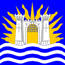 adjacent to a water supply with the rising sun reflecting the city’s location