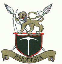 simple motto 'RHODESIA' on a yellow scroll beneath. Interestingly, the