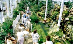 waterfalls and exotic birds. The only glass-enclosed butterfly